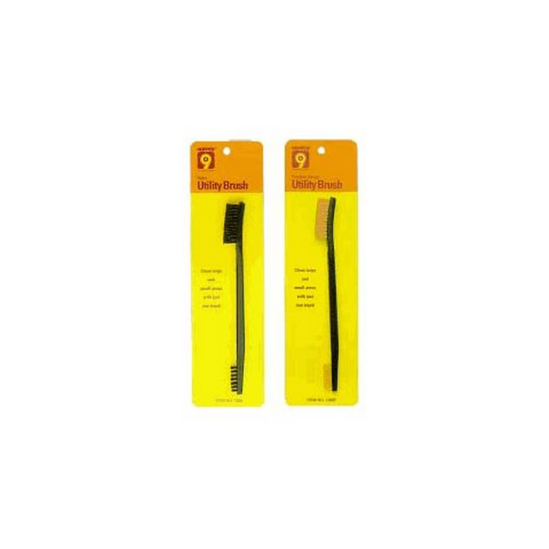 One end of Hoppes Utility Brush has traditional-size bristles for cleaning large imageareas. The other end of Gun Cleaning Hoppe's Utility Brush features smaller bristles for getting into tighter spots. Hoppe Rifle Cleaning Brushes - Nylon / Phosphor Bronze are perfect for cleaning breeches in firearms, or great as all-purpose cleaning brushes.