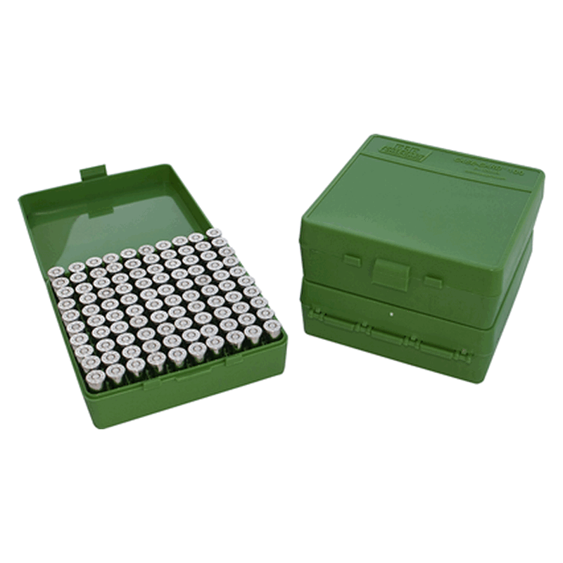 MTM originated the 100 round flip-top handgun ammo boxes over 30 years ago. The Case-Gard P-100’s are the perfect ammo carrier for the handgunner who wants to spend several hours at the range. Ideal for storing reloads. They have an easy to grip, scuff-resistant textured surface and are stackable. The Snap-Lok latch and full length mechanical hinge are guaranteed for 25 years. Calibers for each box our listed on the bottom of each box. Load label included.