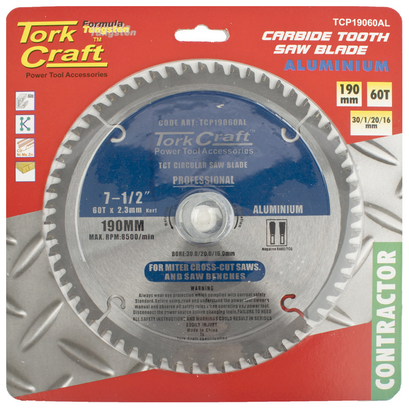 Tork Craft Blade Contractor Alum 190 X 60t 30/20/16 Circular Saw Tct