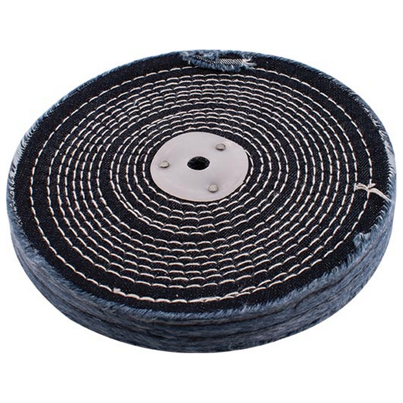 An unstitched buff is used with polishing (finishing) compound on metals. Each fold/leaf of material is approximately 1mm thick.