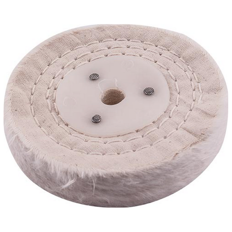 An unstitched buff is used with polishing (finishing) compound on metals. Each fold/leaf of material is approximately 1mm thick.