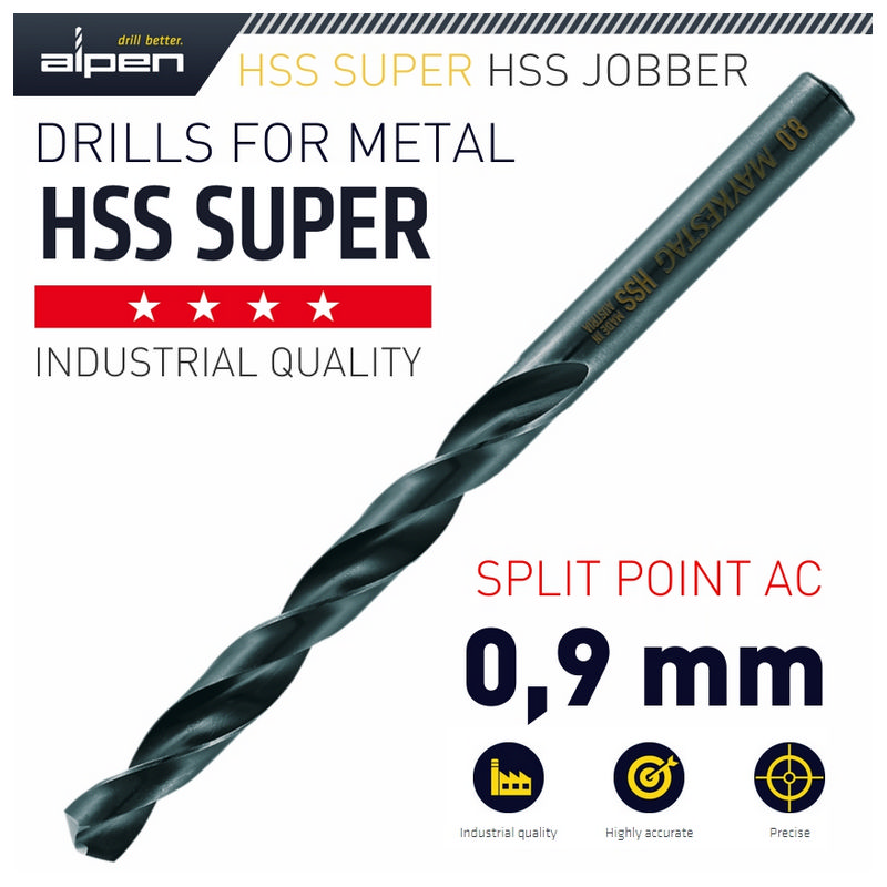 Alpen HSS Super Drill Bit 0.9mm Bulk Ind. Pack