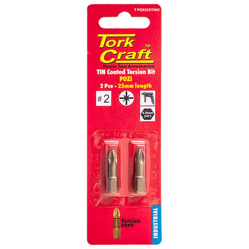 Tork Craft Pz 2 X 25mm Tin Coated Torsion Bit 2pce