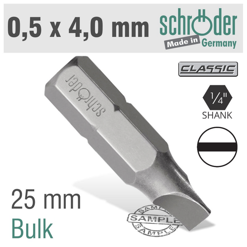 Schroder Slotted Bit 0.5x4.0 25mm Bulk