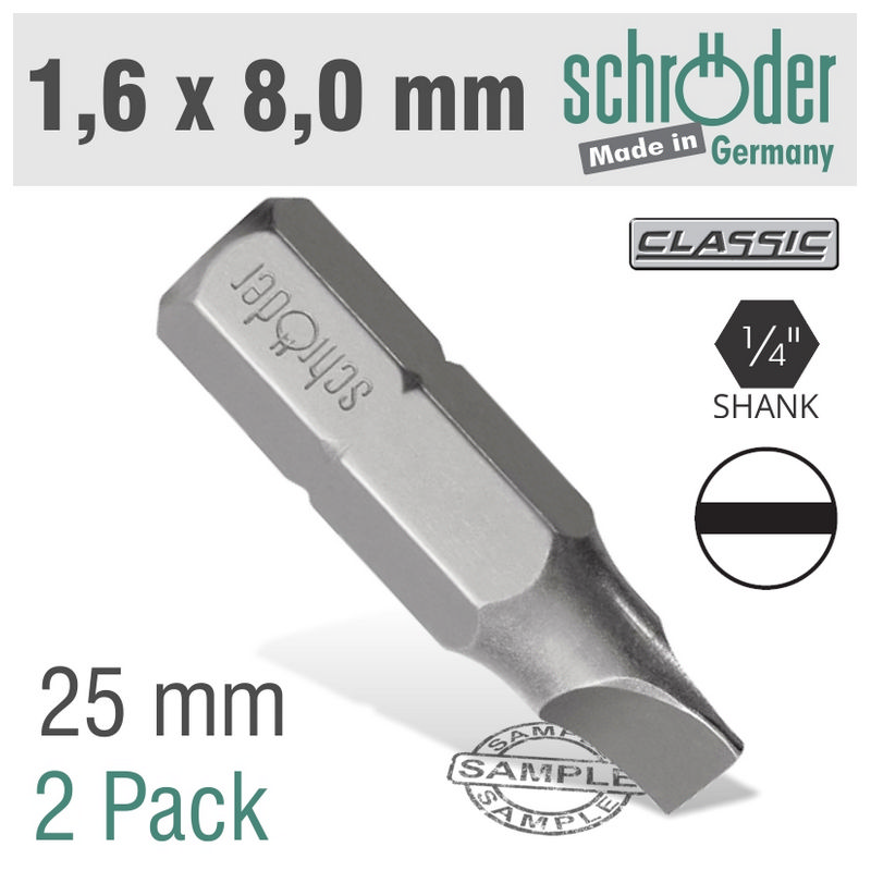 Schroder Slotted Bit 1.6x8mm 25mm 2cd