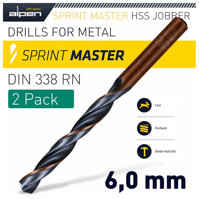 Alpen Sprint Master Din 338 6.0mm 2/Pack