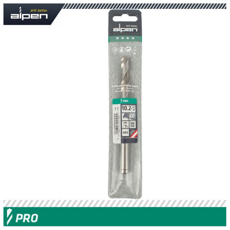 Alpen Pro HSS 10.2mm Drill Din 338 Rn 135 Split Point Plastic Wallet