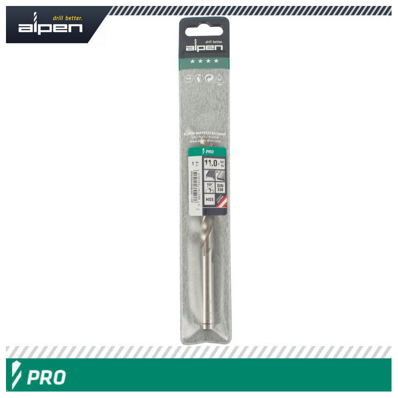 Alpen Pro HSS 11mm Drill Din 338 Rn 135 Split Point Plastic Wallet
