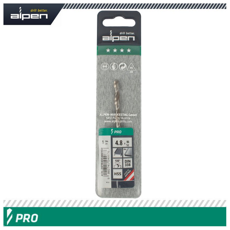 Alpen Pro HSS 4.8mm Drill Din 338 Rn 135 Split Point Plastic Wallet