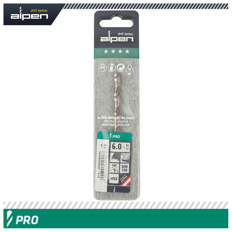 Alpen Pro HSS 6mm Drill Din 338 Rn 135 Split Point Plastic Wallet