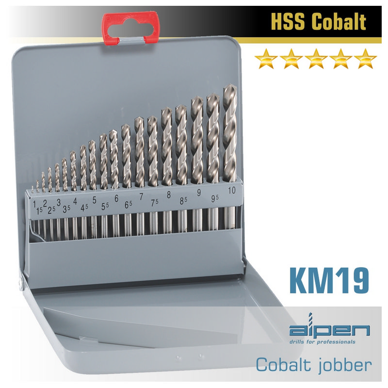 Alpen HSS-ECo Cobalt KM19 Jobber drill set in metal cassette 19 pcs. Ø 1.0-10.0 mm.