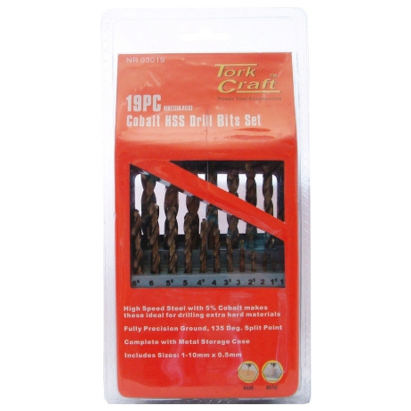 Tork Craft Drill Bit Set Cobalt 19pce 1- 10mm