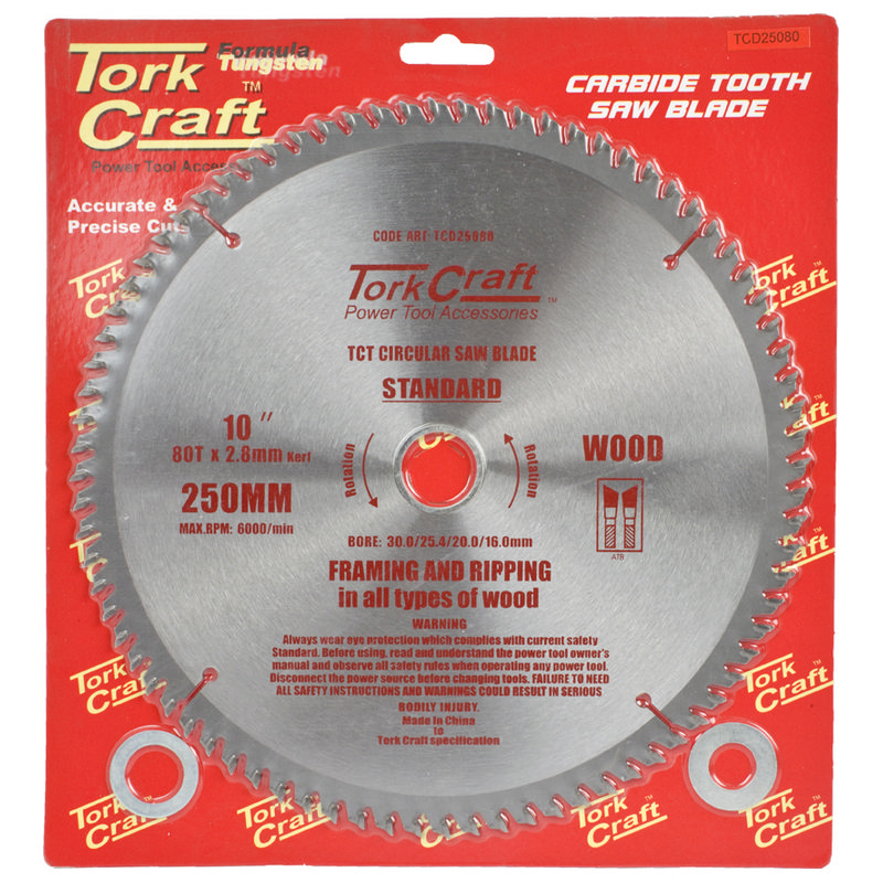 Tork Craft Blade Tct 250 X 80t 30/1/20/1 General Purpose Cross Cut Smooth