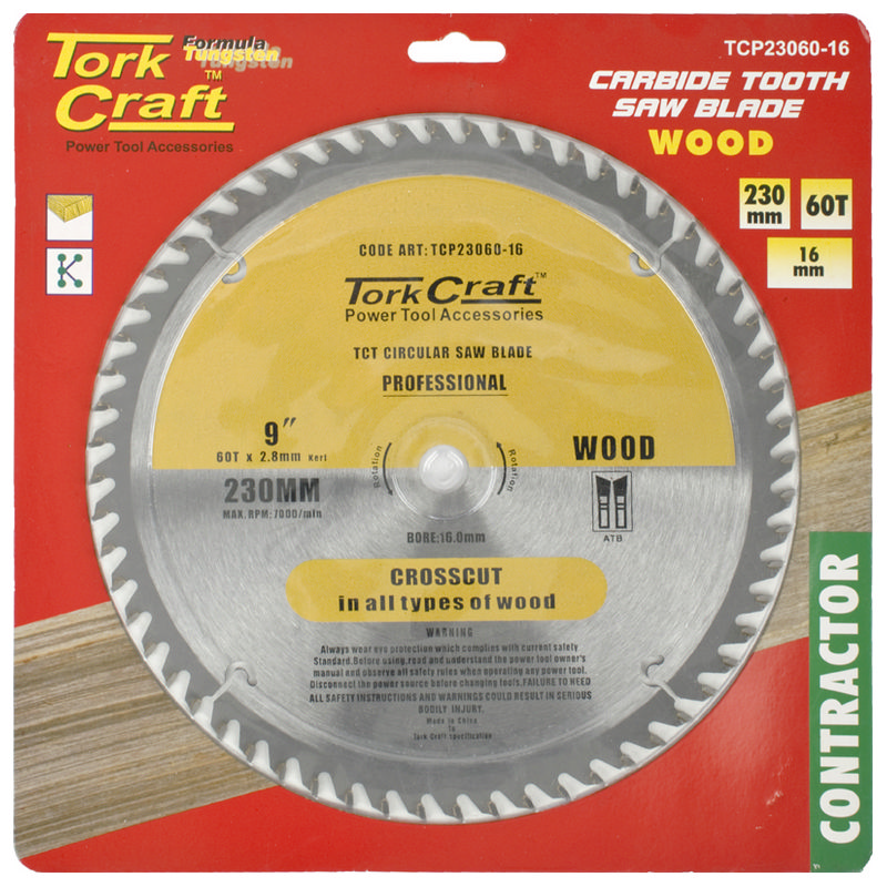 Tork Craft Blade Contractor 230 X 60t 16mm Circular Saw Tct