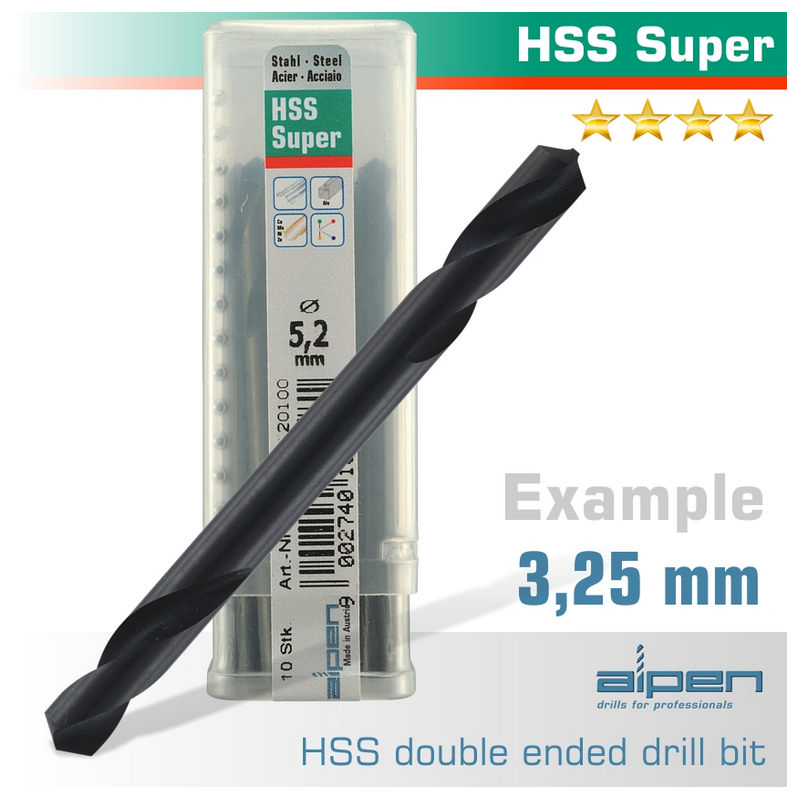 3,25 mm Ø HSS SUPER stub drill bit - Double ended