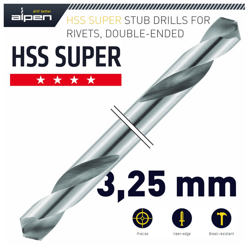 Alpen HSS Super Drill Bit Double Ended 3.25mm 2/Pouch