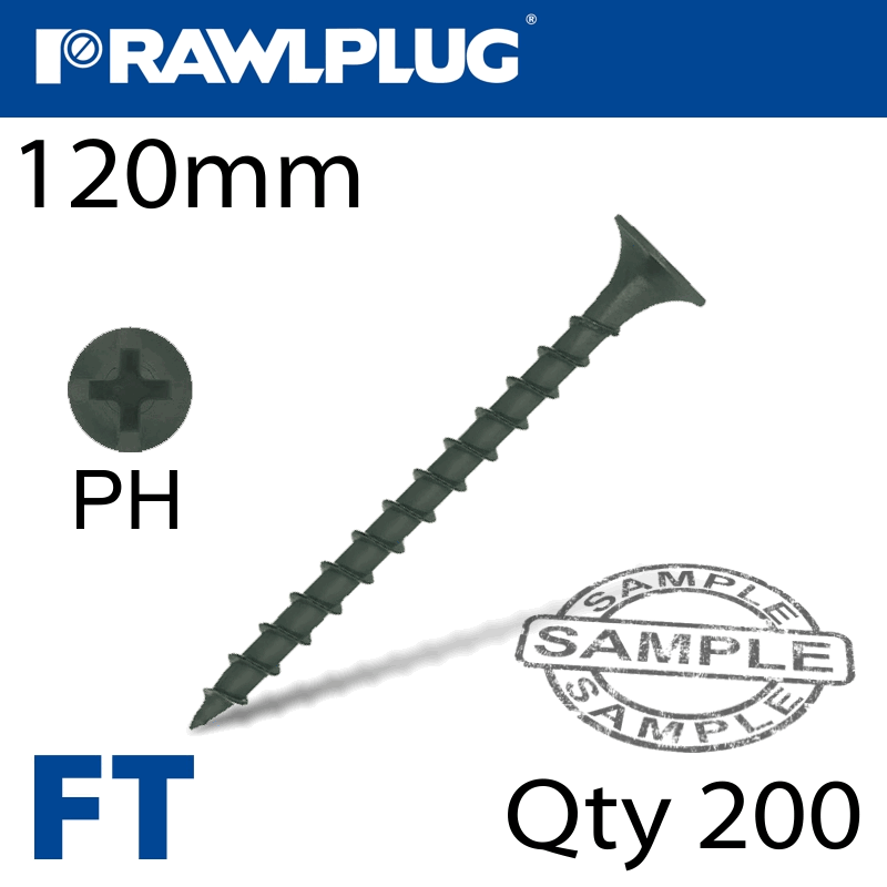 RAWLPLUG Drywall Screw Coarse Thread 4.8Mmx120Mm X200-Box