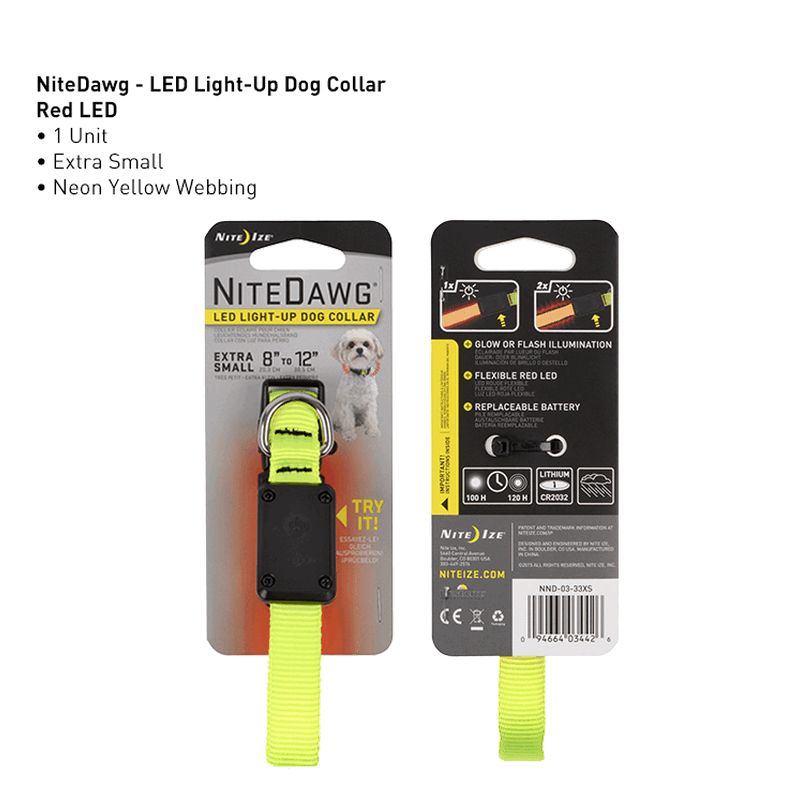 • Nite Ize Nite Dawg Led Dog Collar - Xs - Neon Yellow (NND-03-33XS)