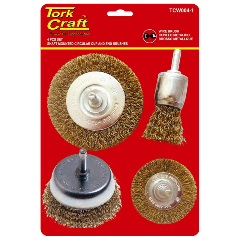 Tork Craft Wire Brush Set 4pce With Shaft End/Cup/Circ