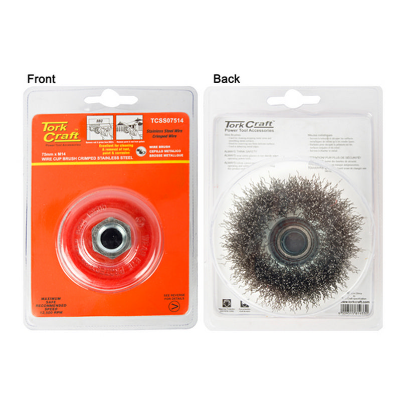 WIRE CUP BRUSH 75 X M14 CRIMPED STAINLESS STEEL TCW