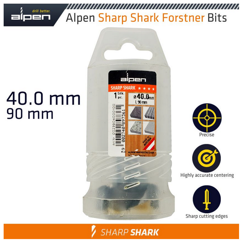 Alpen Forstner Drill Bit Sharp Shark 40Mm
