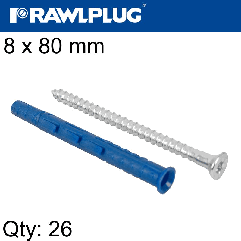 RAWLPLUG Frame Fixing Ff1 With Csk Head Screw 8X80Mm 26Psc Per Tub