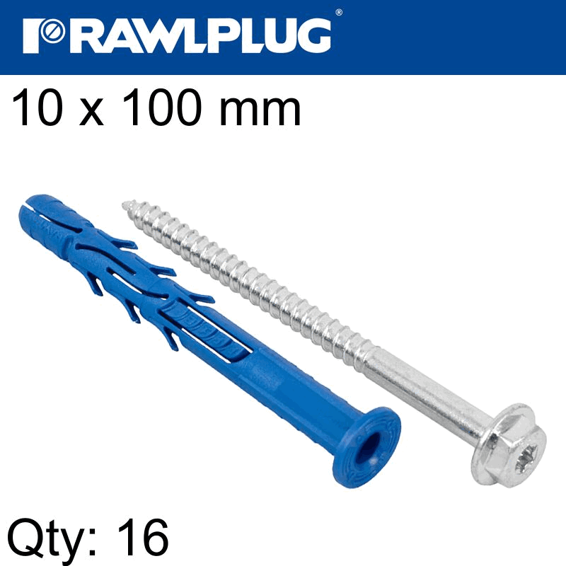 RAWLPLUG Frame Fixing Ff1 With Hex Head Screw 10X100Mm 16Psc Per Tub