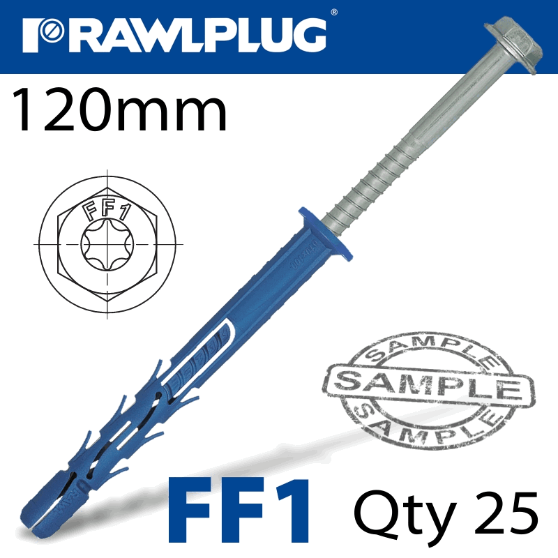 RAWLPLUG Nyl Frame Fixing Zp + Collar Hex Screw 9.8Mmx120Mm X25 -Box