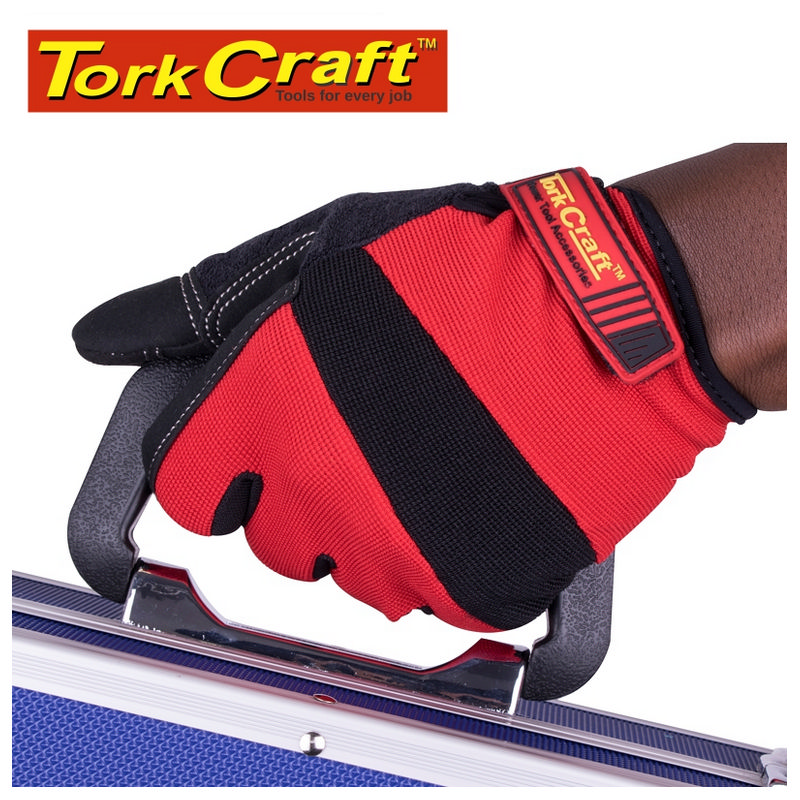 The palm side of the glove is covered with a synthetic leather to ensure a better grip when using tools. It also protects skin from forming calluses or blisters. Lycra panels between fingers allow free movement and stretch.