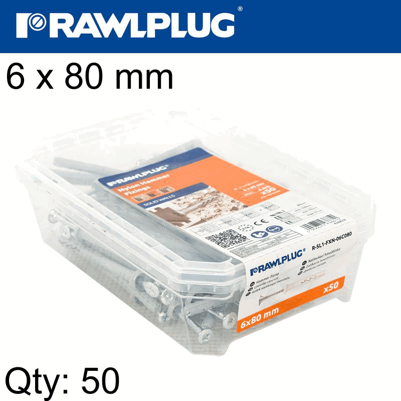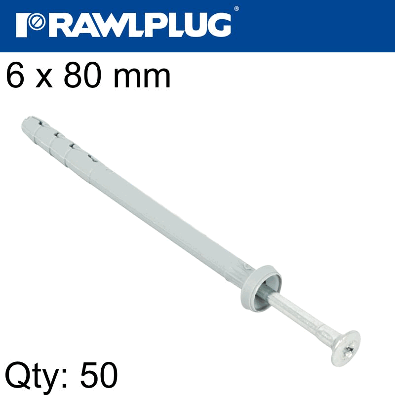RAWLPLUG Hammer In Fixing 6 X 80Mm Cylindric 50 Psc Per Tub