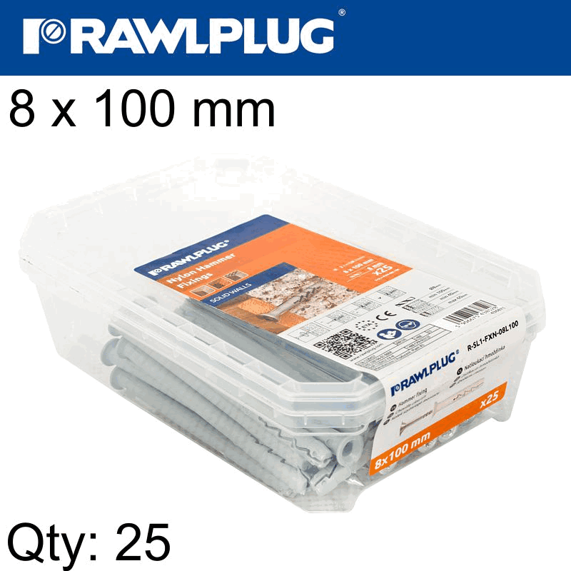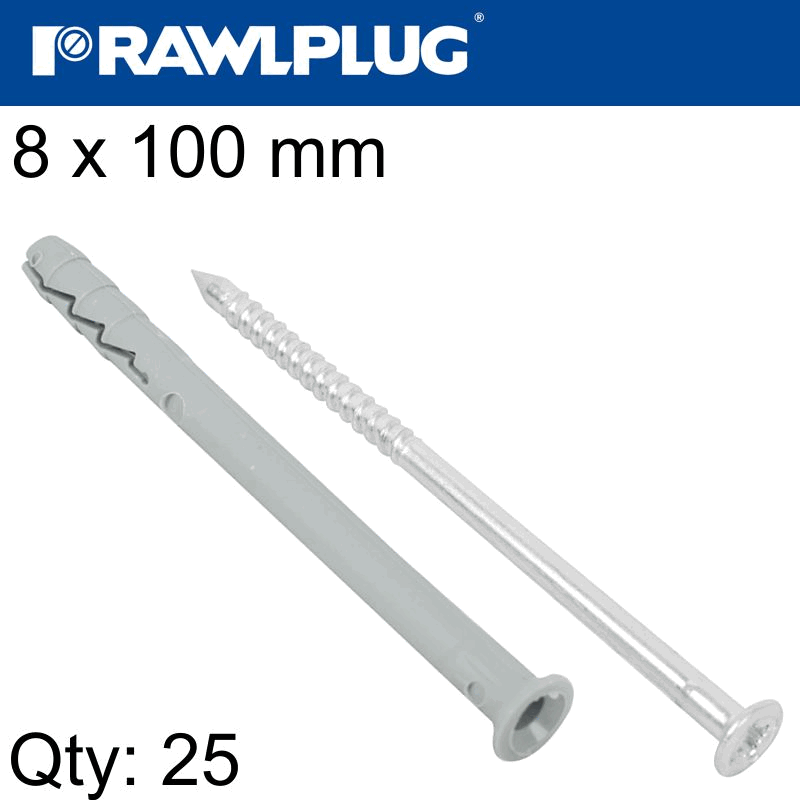 RAWLPLUG Hammer In Fixing 8 X 100Mm Csk 25 Psc Per Tub