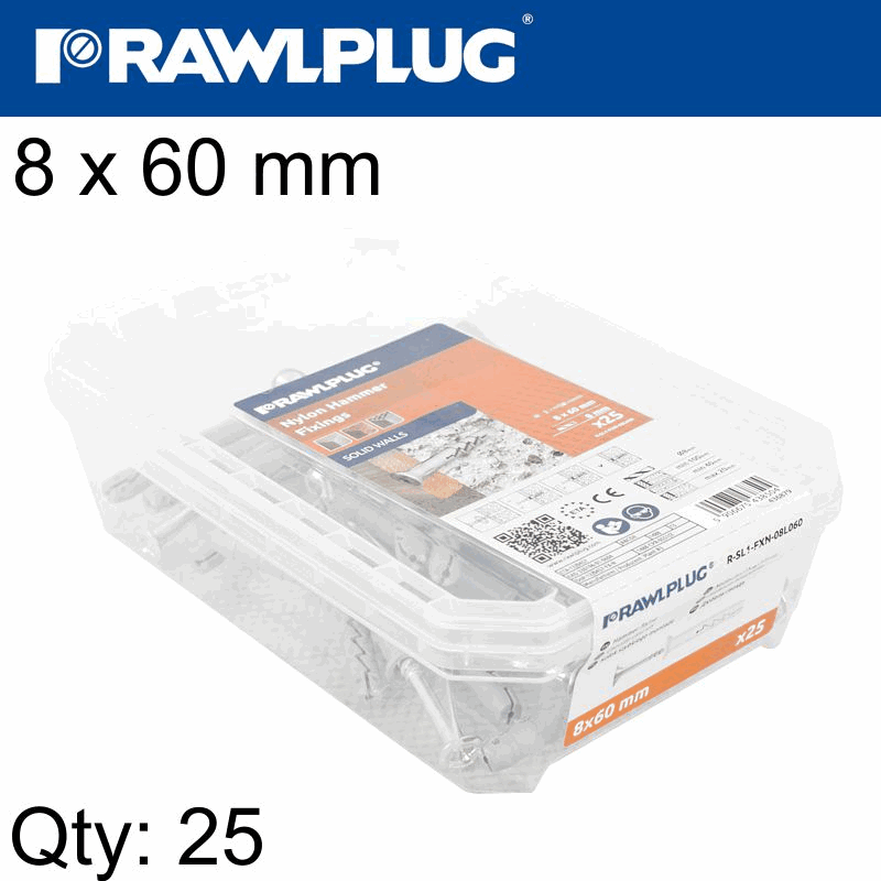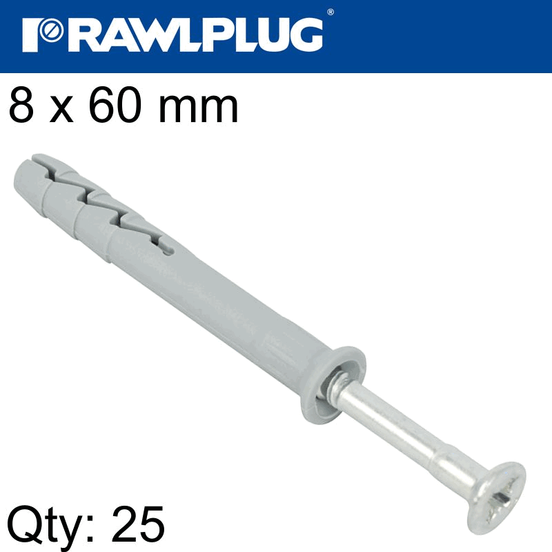 RAWLPLUG Hammer In Fixing 8 X 60Mm Csk 25 Psc Per Tub