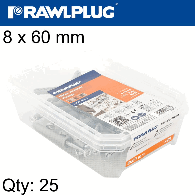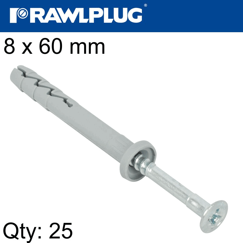 RAWLPLUG Hammer In Fixing 8 X 60Mm Cylindric 25 Psc Per Tub