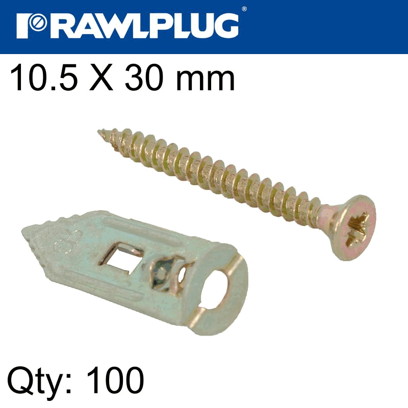 RAWLPLUG Hammer In Fixing Plasterboard+Screws 10.5X30Mm X100-Box