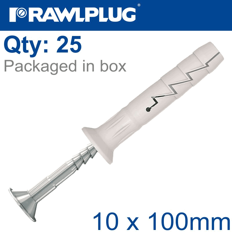 RAWLPLUG Nyl Hammer-In Fixing 10X100Mm + Csk Head X25 -Box