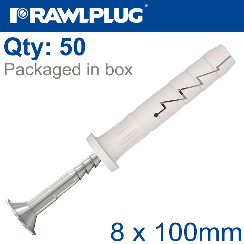 RAWLPLUG Nyl Hammer-In Fixing 8X100Mm Cyl Head X50-Box