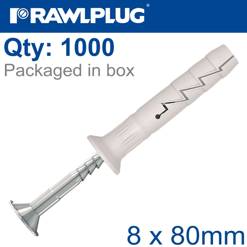 RAWLPLUG Nyl Hammer-In Fixing 8X80Mm+ Csk Head X1000 Per Box