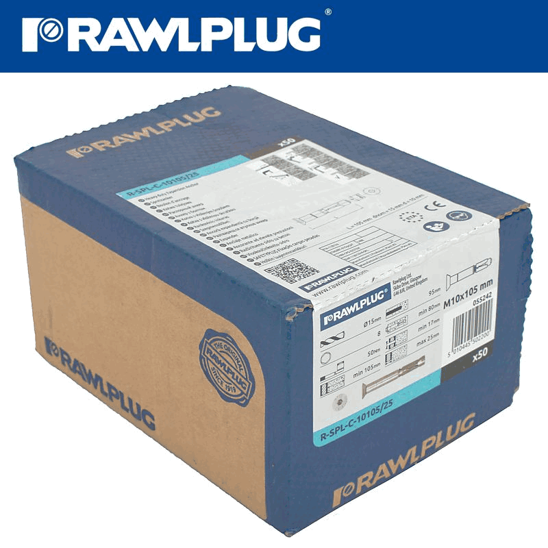 RAWLPLUG R-Spl Safety Plus - Countersunk M10X105Mm X50 Per Box