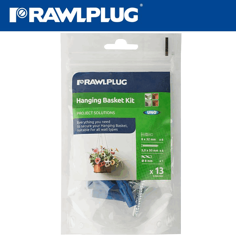 RawlPlug Hanging Basket Kit Uno-08 X6 With Screws And 8mmm Drill Bit