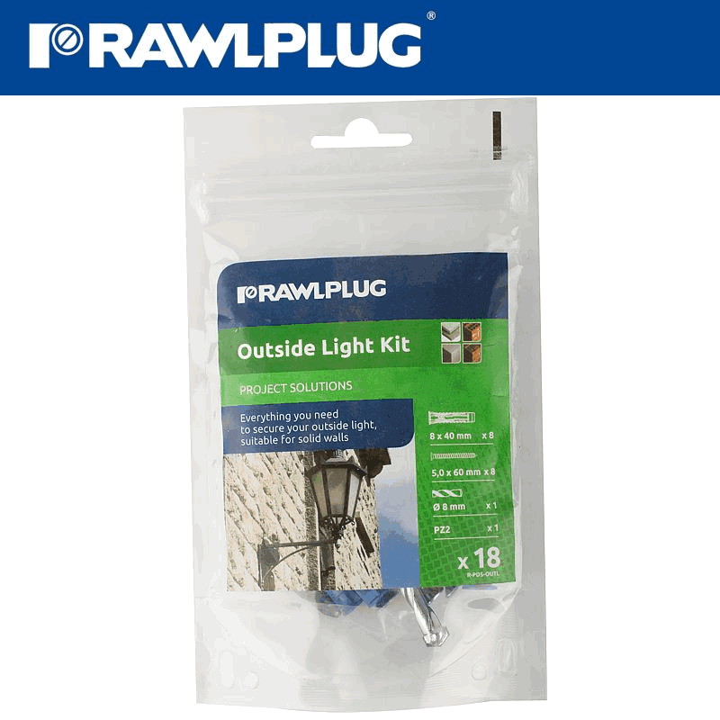 RAWLPLUG Outside Light Kit 4All-08X8-5.0X5Mm Screws With 8Mm Drill Bit