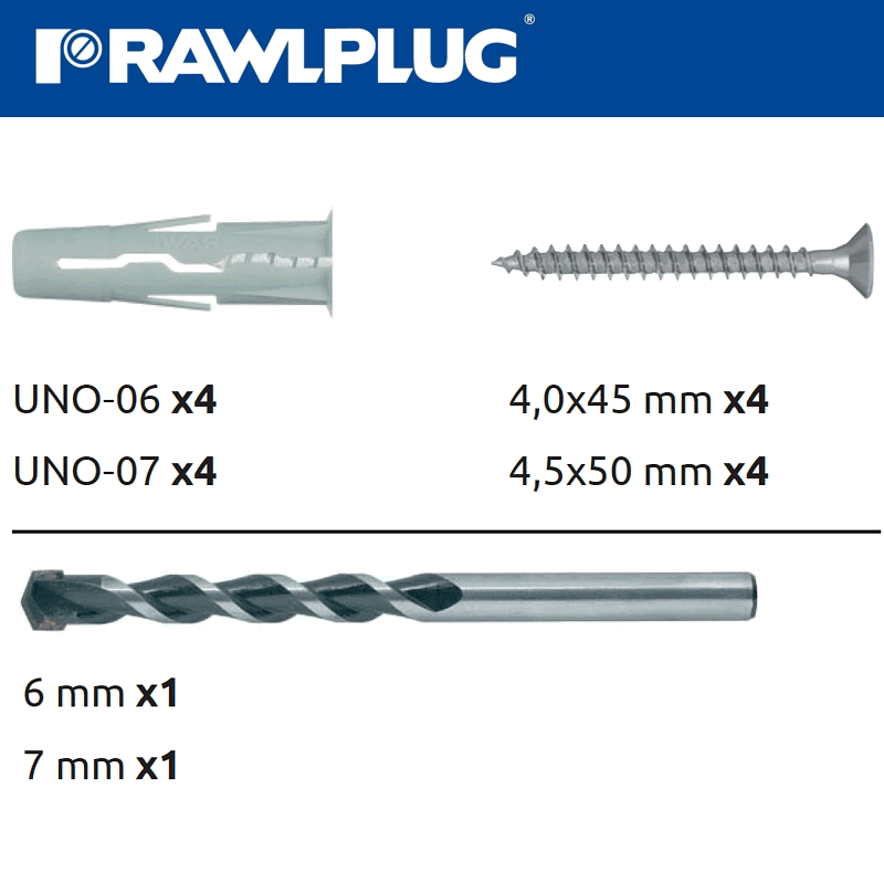 RAWLPLUG Shelving Kit Uno6X4 Uno7X4 Plus Screws With 6Mm And 7Mm Drill Bit
