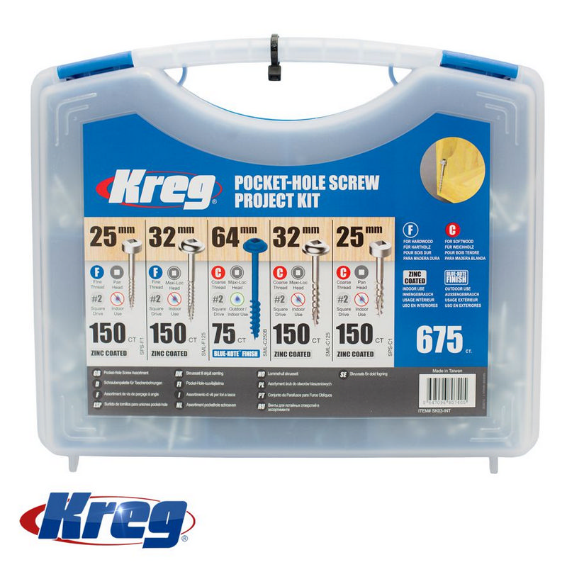 This kit contains five of the most popular self-tapping pocket-hole screws for Kreg Joinery™ in a durable, easy-to-carry case. It makes a great starter kit for anyone new to Kreg Joinery™.