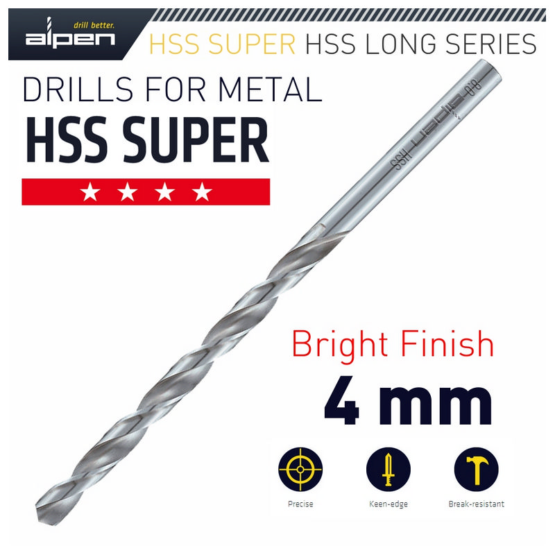 Alpen HSS Super Drill Bit Long 4 X 119mm Pouch