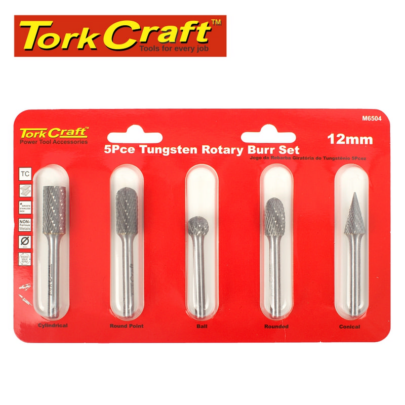 Tork Craft Tungsten Rotary Burr Set 5 Pce 12mm Tcbu