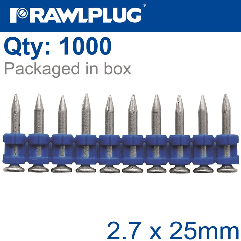 RAWLPLUG Pins For Concrete 2.7Mmx25Mm X1000 Per Box + 1 Fuel Cell