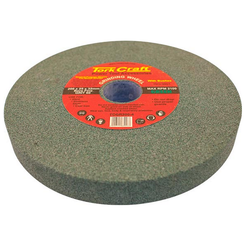 Tork Craft Grinding Wheel 200x25x32mm Bore Fine 60gr W/Bushes For B/G Green