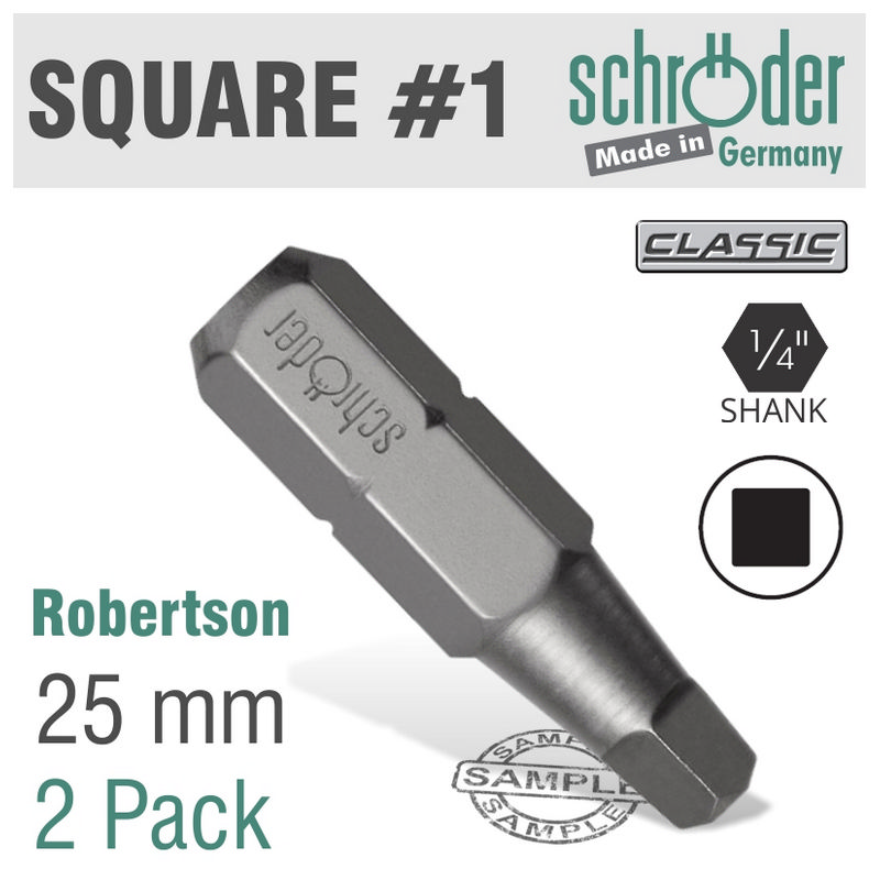 Schroder Sq.Recess No.1x25mm Bit 2/Card