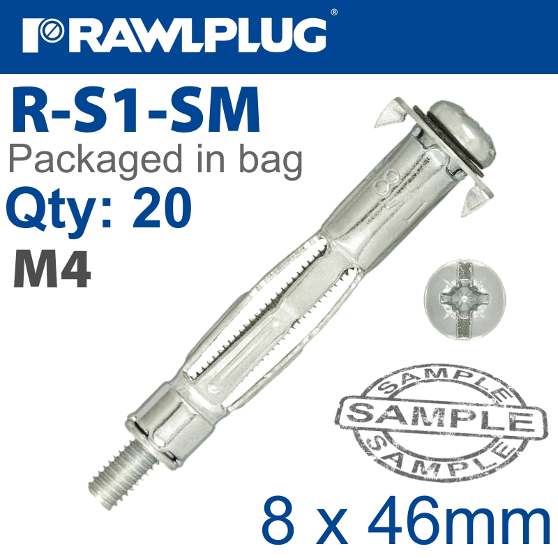 RAWLPLUG Interset Cavity Fixing M4X46Mm X20-Bag