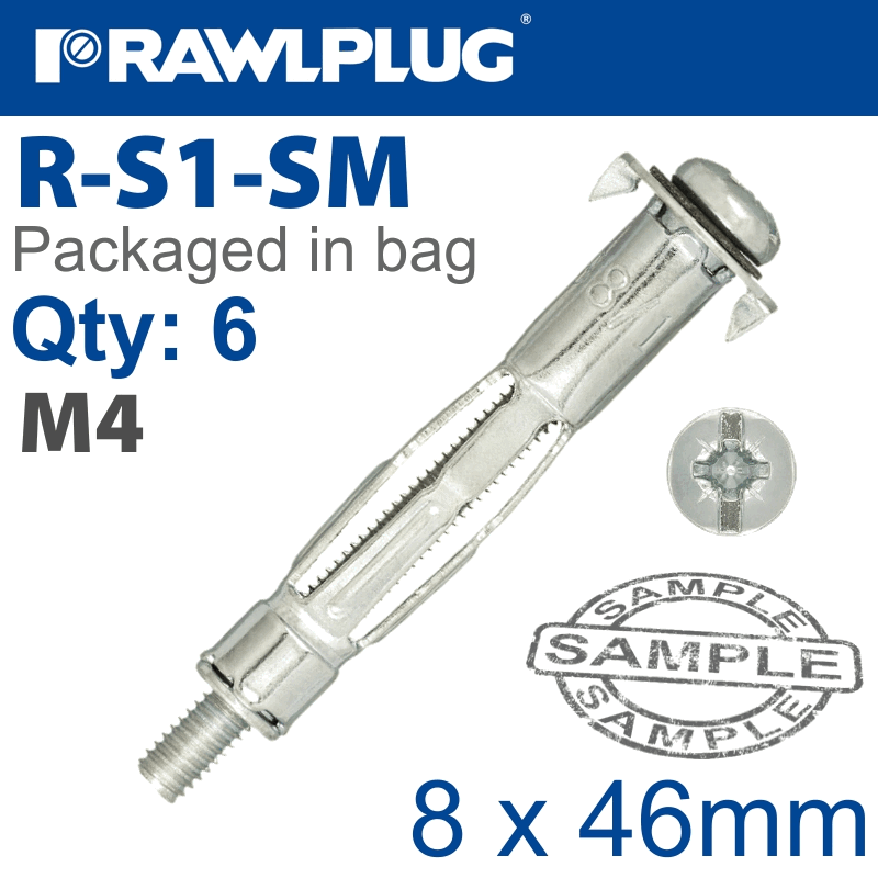 RAWLPLUG Interset Cavity Fixing M4X46Mm X6-Bag