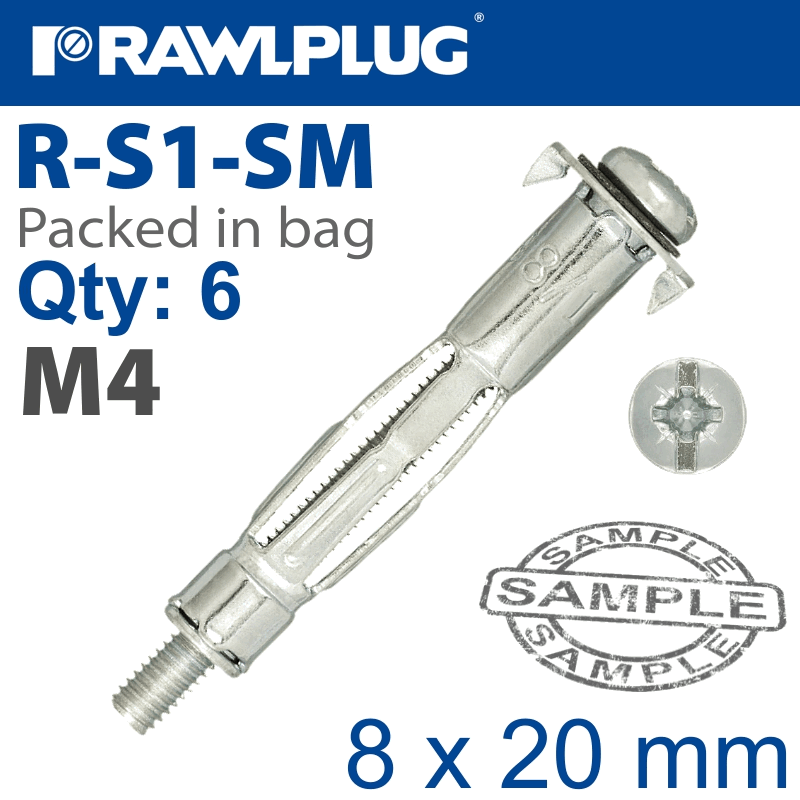 RAWLPLUG Interset Cavity Fixing M4X8X20Mm 6 Per Bag